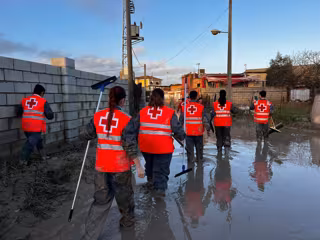 Equipo de voluntarios de Cruz Roja en labores de limpieza en las parcelaciones de Córdoba inundadas por la crecida del río Guadalquivir. - CRUZ ROJA