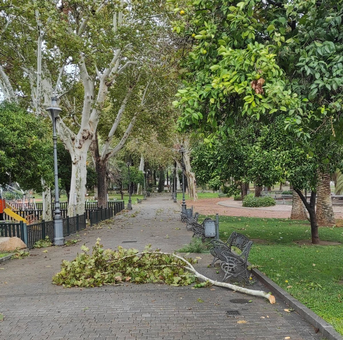 Rama caída en los Jardines de la Agricultura de Córdoba por el temporal de viento y lluvia del jueves 19 de octubre. - EUROPA PRESS