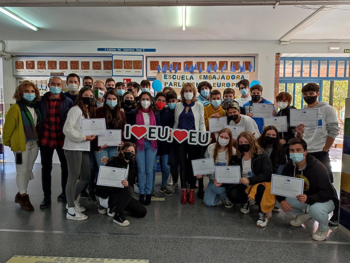 La delegada ha destacado el trabajo realizado por este grupo de alumnos embajadores por ser "los mejores difusores del conocimiento de Europa, de sus instituciones y de sus valores" y ha destacado, además, su papel como "grandes defensores de la democracia parlamentaria europea en el entorno, lo que les permite experimentar plenamente la ciudadanía europea".