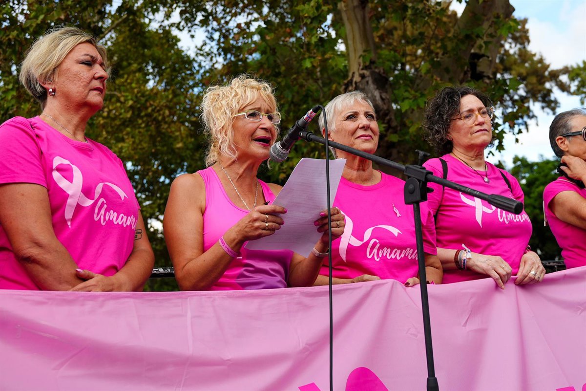 Archivo - La presidenta de la asociación de Mujeres con Cáncer de Mama de Sevilla (Amama), Ángela Claverol interviene en la concentración. A 26 de octubre de 2025 en Sevilla, Andalucía (España). - Francisco J. Olmo - Europa Press - Archivo