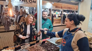 Clientes atendidos por una vendedora en uno de los puestos de venta ambulante de la Carpa Navideña. - COMACOR