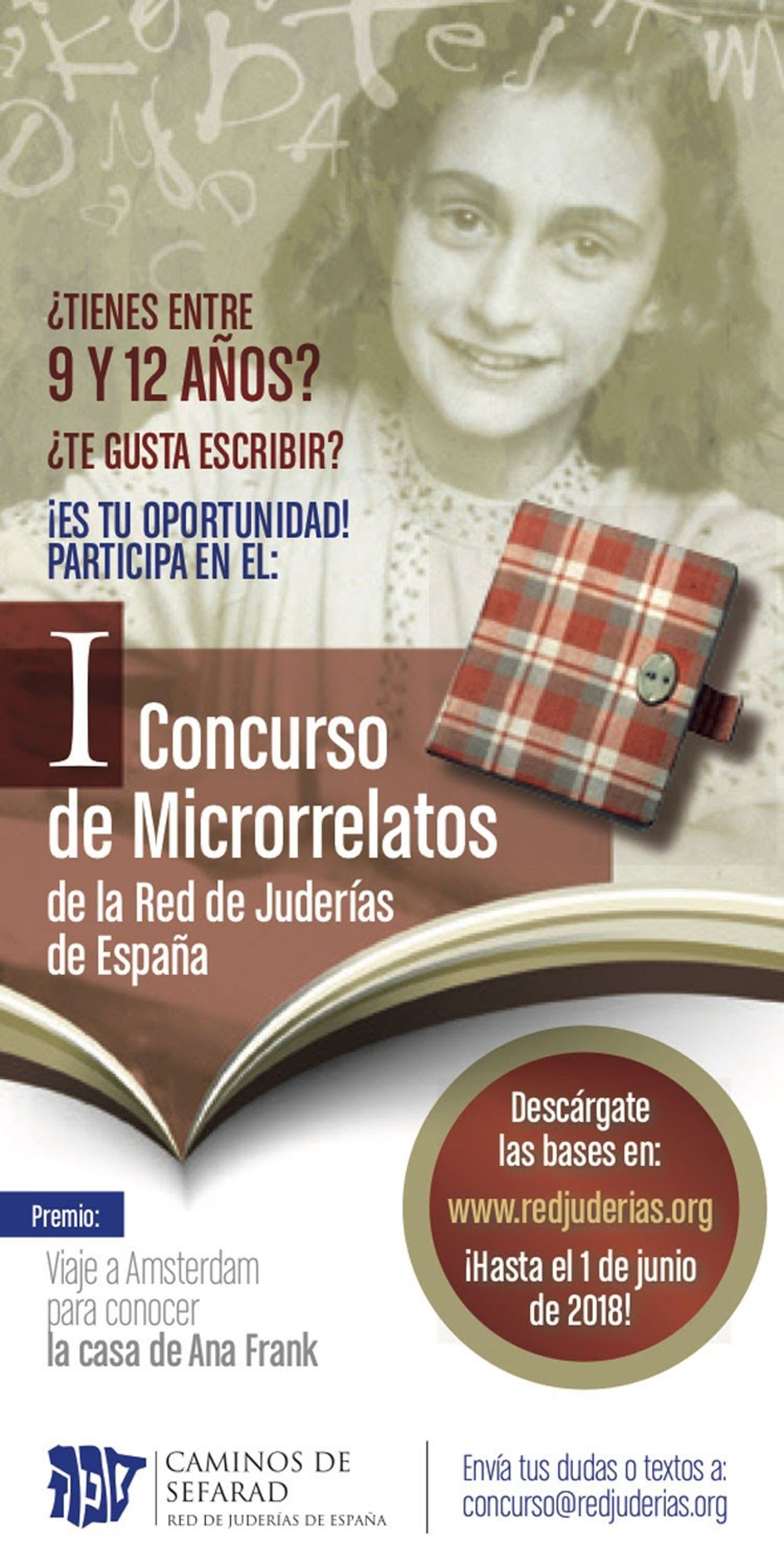Con su sacrificio, Ana Frank se convirtió en un modelo de conducta para la humanidad que, mas de 70 años después de su muerte, sigue inspirando a personas de todo el mundo y de todas las edades, especialmente a los más jóvenes. Es precisamente a los escolares de hasta 12 años matriculados en los centros docentes de las 18 ciudades que forman la Red de Juderías de España a quienes, invocando la figura y actitud de Ana Frank, está dirigido el nuevo concurso de microrrelatos organizado por la red.