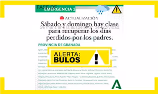 Los autores del "bulo" desmentido por la Junta "han utilizado una de las comunicaciones oficiales de la Consejería de Desarrollo Educativo para sobreescribir encima el texto 'Sábado y domingo hay clase para recuperar los días perdidos por los padres', y la están haciendo circular por redes sociales, lo que está generando confusión", lamentan desde el Gobierno andaluz para reiterar que "este mensaje es falso".