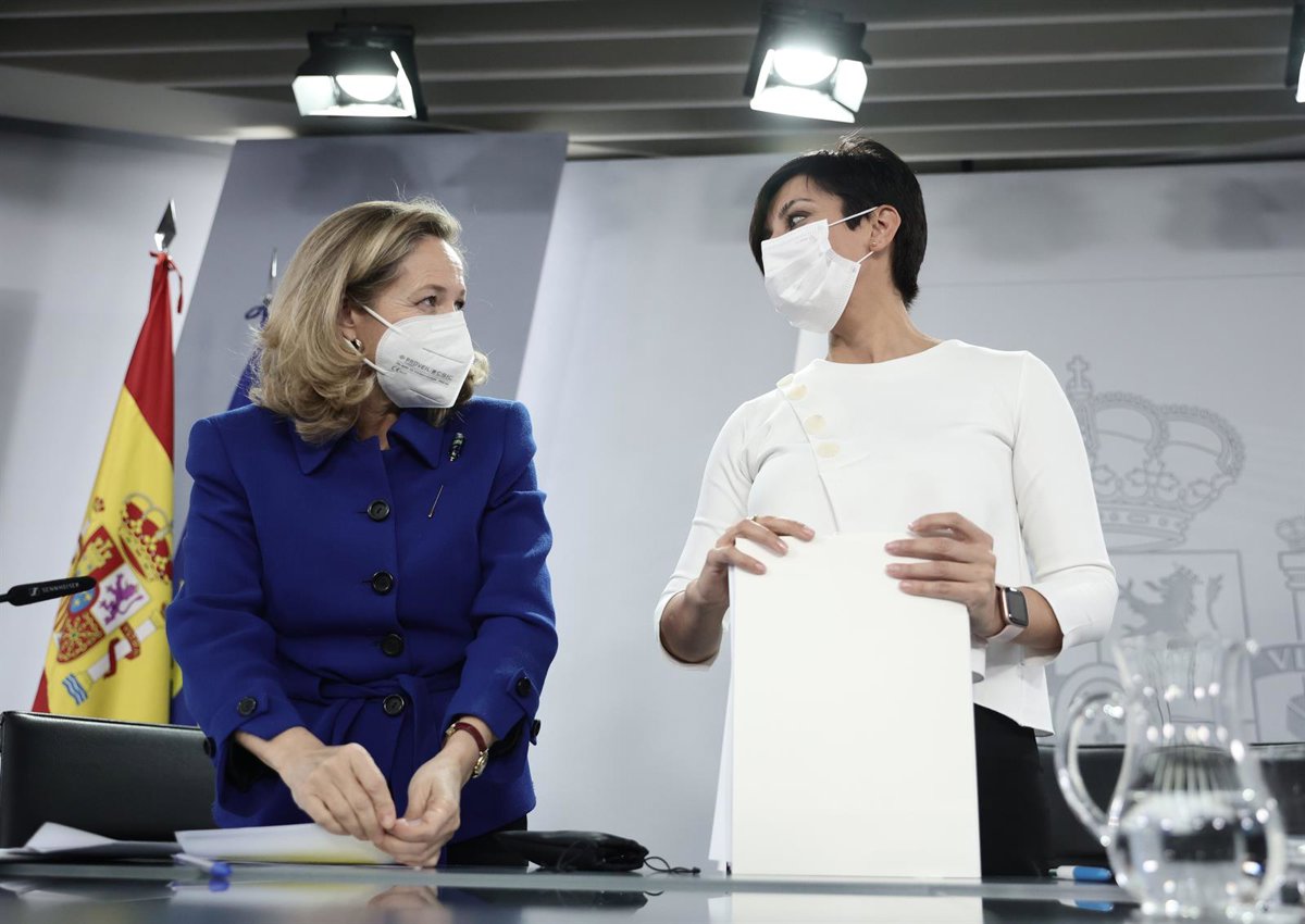 La vicepresidenta primera y ministra de Asuntos Económicos y Transformación Digital, Nadia Calviño (i) y la ministra Portavoz, Isabel Rodríguez (d), al finalizar una rueda de prensa tras la reunión del Consejo de Ministros, a 30 de noviembre de 2021, en - EUROPA PRESS/E. Parra. POOL - Europa Press