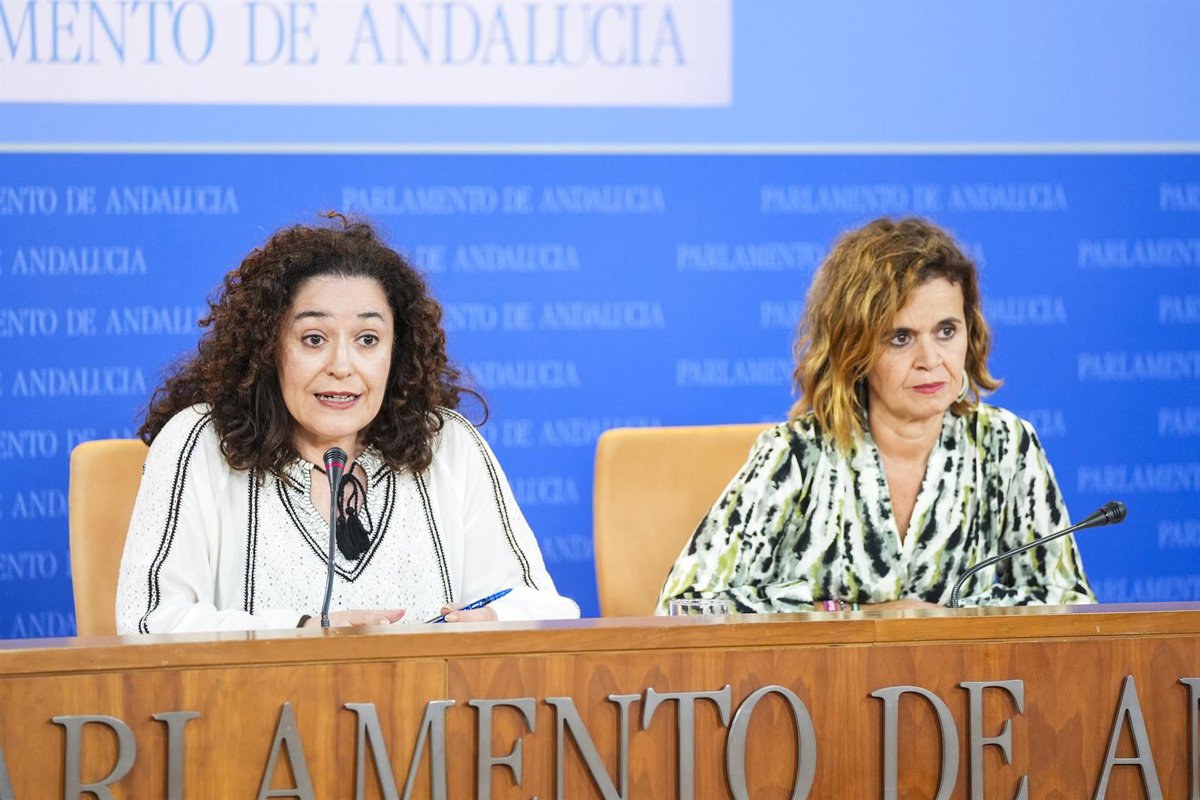 La portavoz del Grupo Por Andalucía, Inmaculada Nieto, y la diputada Esperanza Gómez, este miércoles en rueda de prensa en el Parlamento. - Joaquin Corchero - Europa Press