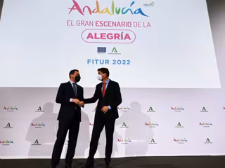 Así lo ha anunciado en una rueda de prensa conjunta el presidente del Gobierno andaluz, Juanma Moreno, celebrada en el 'Gran escenario de la Alegría' del Pabellón de Andalucía de la Feria Internacional de Turismo (Fitur) 2022, que ha arrancado este miércoles en Madrid, en la que ha comparecido con el vicepresidente y consejero de Turismo, Juan Marín,