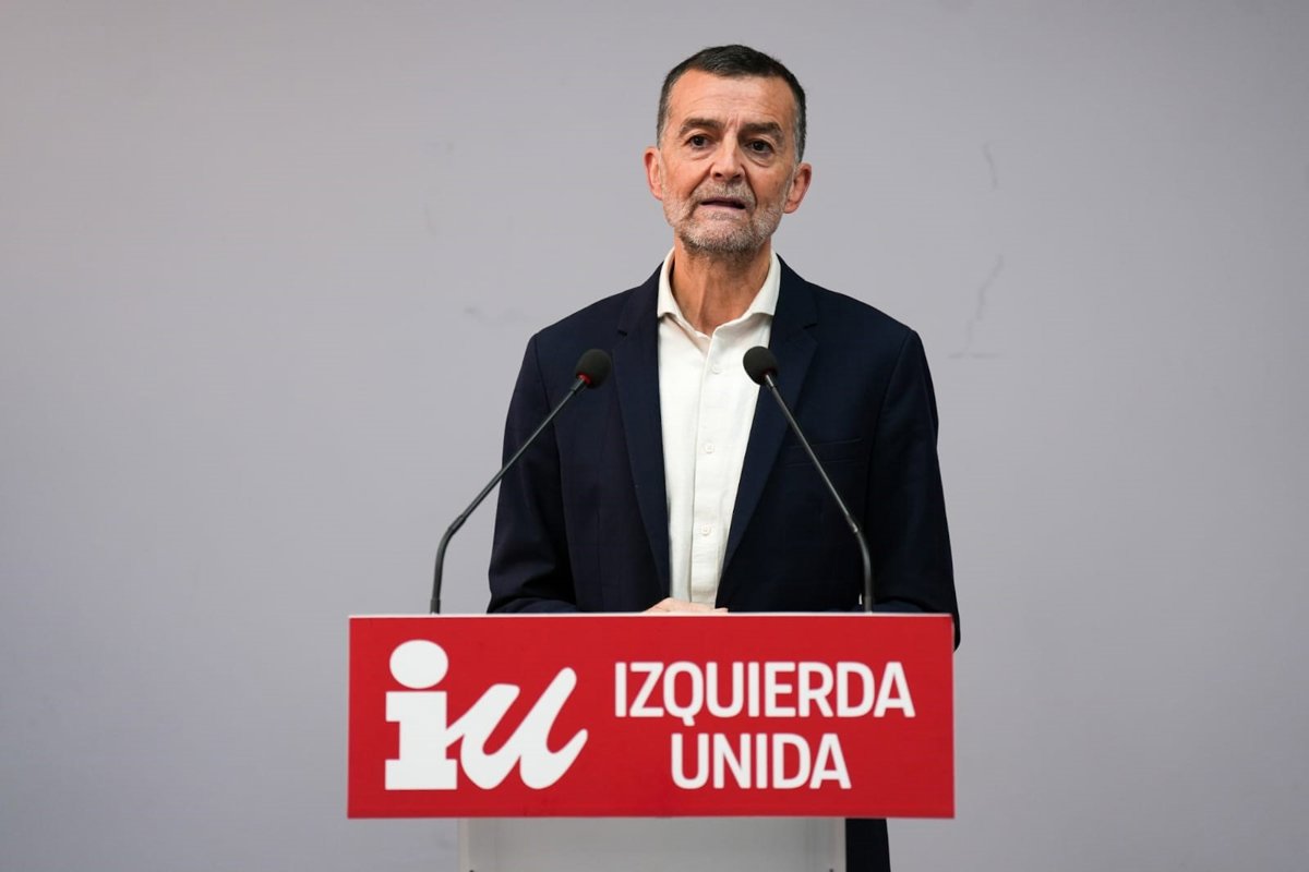 El coordinador federal de IU, Antonio Maíllo, en rueda de prensa este miércoles en la sede de IU Andalucía en Sevilla. - FRANCISCO J. OLMO/EUROPA PRESS