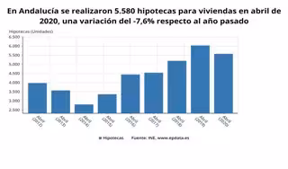 El número de hipotecas constituidas sobre viviendas en Andalucía ha caído un 7,6% en abril en comparación con el mismo mes del pasado año tras registrar 5.580 operaciones, mientras que representa un crecimiento del 6,8% sobre el mes precedente, según la estadística de hipotecas publicada este viernes por el Instituto Nacional de Estadística (INE).