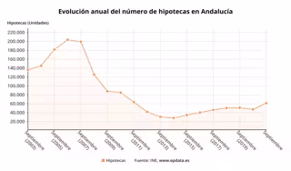 La firma de hipotecas sobre viviendas en Andalucía subió un 76,6% en septiembre en Andalucía respecto al mismo mes de 2020, hasta sumar 8.749 préstamos, séptimo ascenso consecutivo interanual tras seis meses de descenso; cifra que representa un aumento del 32,8% en relación al pasado mes, en el que se contabilizaron 6.589 préstamos, según los datos difundidos este martes por el Instituto Nacional de Estadística (INE).