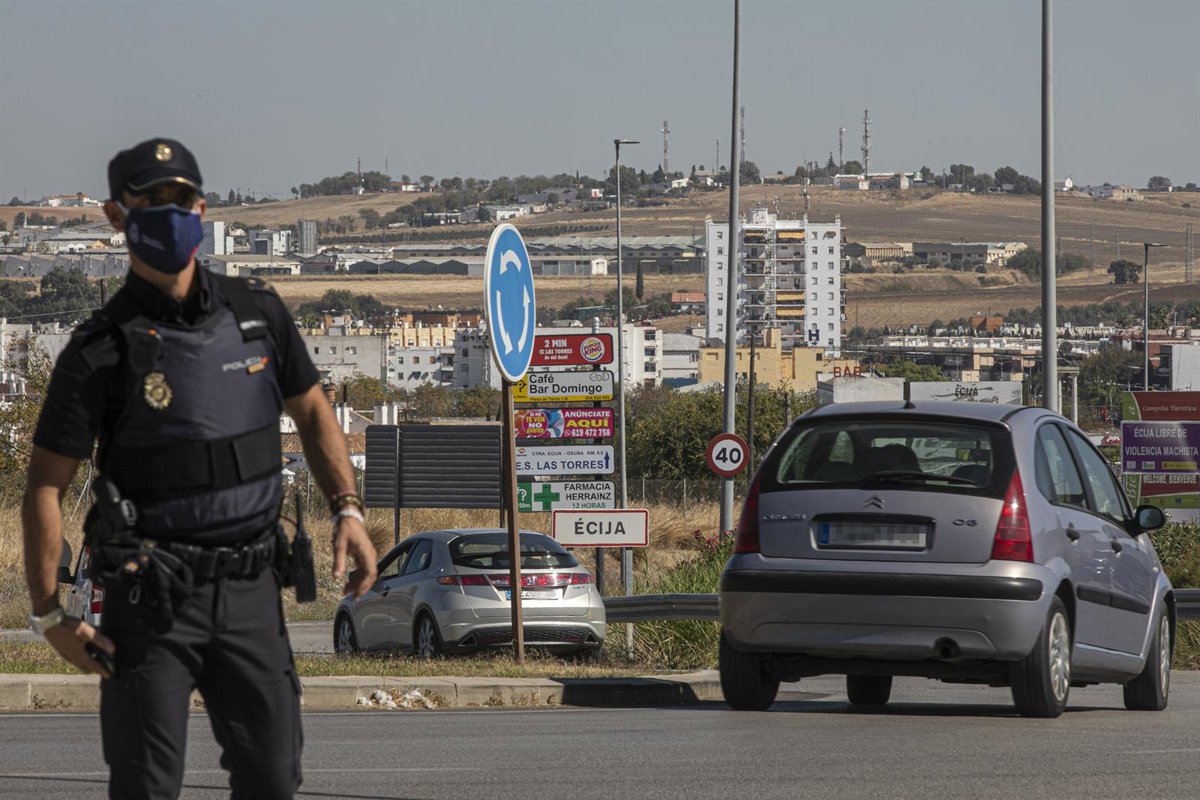 n policía nacional en un control a la entrada del pueblo sevillano de Écija, en el primer día en el que la Junta de Andalucía resolvió, mediante un boletín oficial (BOJA) extraordinario, que la restricción durante diez días naturales de las entradas y s - María José López - Europa Press