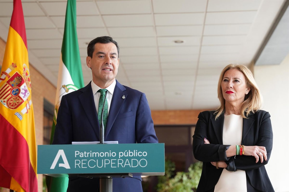 Archivo - El presidente de la Junta de Andalucía, Juanma Moreno (i), y la consejera de Hacienda, Carolina España (d), en una foto de archivo. - María José López - Europa Press - Archivo