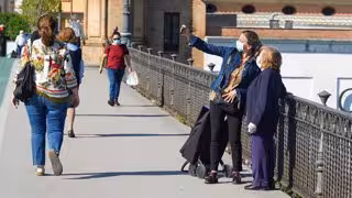 Personas mayor protegido con mascarilla pasea por el puente de Triana, foto de archivo - Eduardo Briones - Europa Press