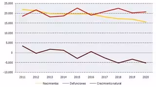 Andalucía ha registrado en el primer trimestre de 2020 5.234 defunciones más que nacimientos tras contabilizar 15.501 nacimientos y 20.735 defunciones. Como resultado, el crecimiento natural en Andalucía, la diferencia entre los nacimientos y las defunciones ha sido negativo, de 5.234 personas.