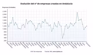El número de nuevas sociedades mercantiles en Andalucía se ha situado en en 1.202 en octubre, lo que eleva el total de empresas a 7.822, según los datos difundidos este martes por el Instituto Nacional de Estadística (INE).