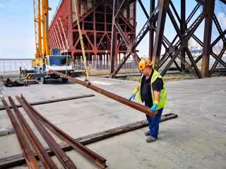 Archivo - Un obrero carga vigas metálicas, en una imagen de archivo. - APA - Archivo