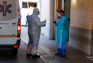 Llega una ambulancia con un enfermo al Hospital Virgen del Rocío. - Eduardo Briones - Europa Press - Archivo