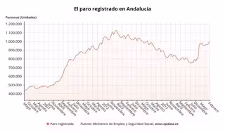 Andalucía ha superado la cifra del millón de parados, en concreto, 1.002.104, al sumar en las oficinas de los servicios públicos de empleo 14.418 desempleados más en el mes de febrero, lo que supone un incremento del 1,46 por ciento respecto al mes anterior, según los datos facilitados este martes por el Ministerio de Trabajo y Economía Social.