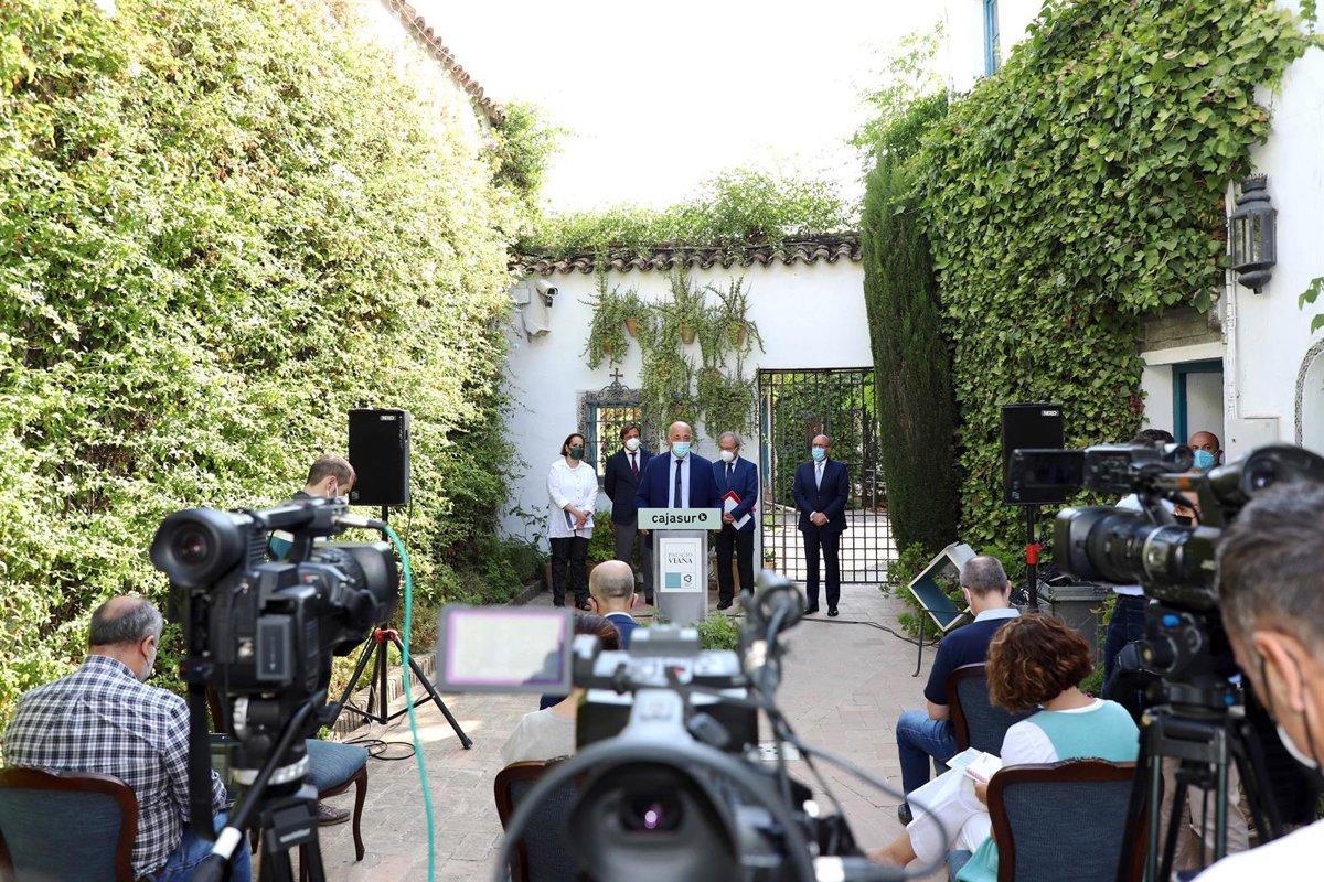 El presidente de la Diputación de Córdoba, Antonio Ruiz, que ha participado este lunes, junto al consejero delegado de Cajasur, Joseba Barrena, y otras autoridades, en la presentación en el Palacio de Viana de Córdoba del estudio sobre el impacto de la actividad de Cajasur en la economía andaluza y cordobesa, ha resaltado el papel de la entidad financiera con sede en Córdoba para garantizar que los recursos públicos lleguen a los municipios de la provincia.