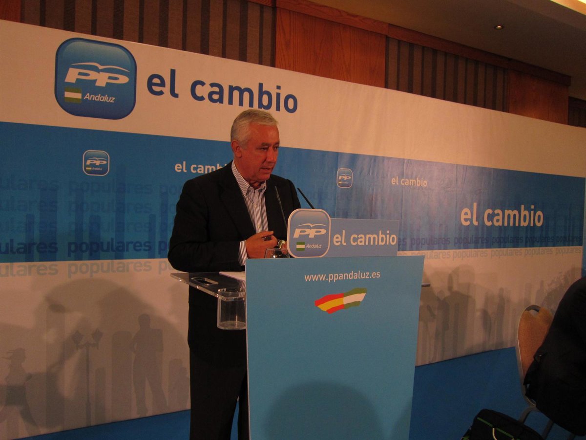 El presidente del PP-A, Javier Arenas, espera que el consejero de Empleo, Manuel Recio, explique en el Parlamento andaluz, como han pedido los populares, en qué consistieron los contratos que encargó su departamento a una agencia publicitaria que se encarga habitualmente de las campañas del PSOE-A.
