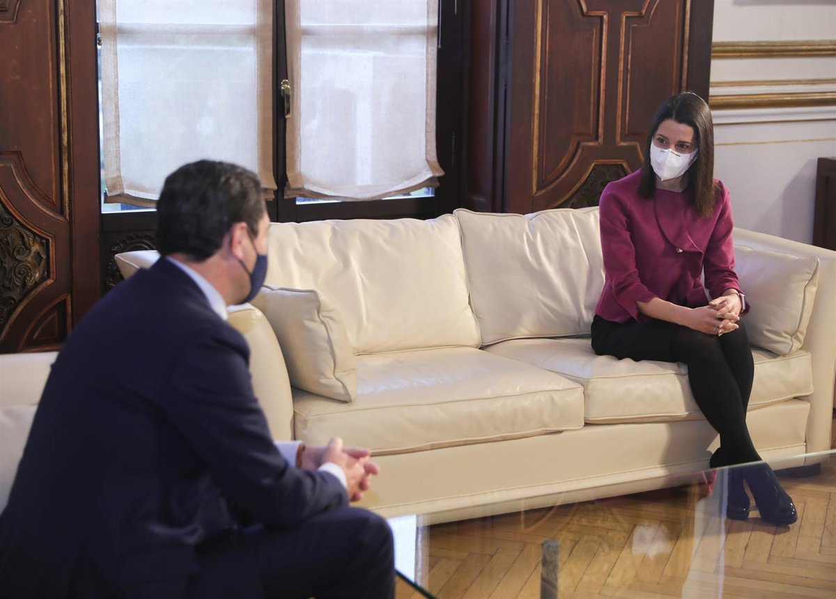 La presidenta de Cs ha señalado que el líder de Cs en Andalucía, Juan Marín, le ha recibido en Sal Telmo --sede del Gobierno andaluz--, aunque no haya estado presente en el encuentro que ha mantenido con Juanma Moreno, y, además, ha recordado que mantendrán este mismo miércoles una reunión del Comité Autonómico de Cs en Andalucía.
