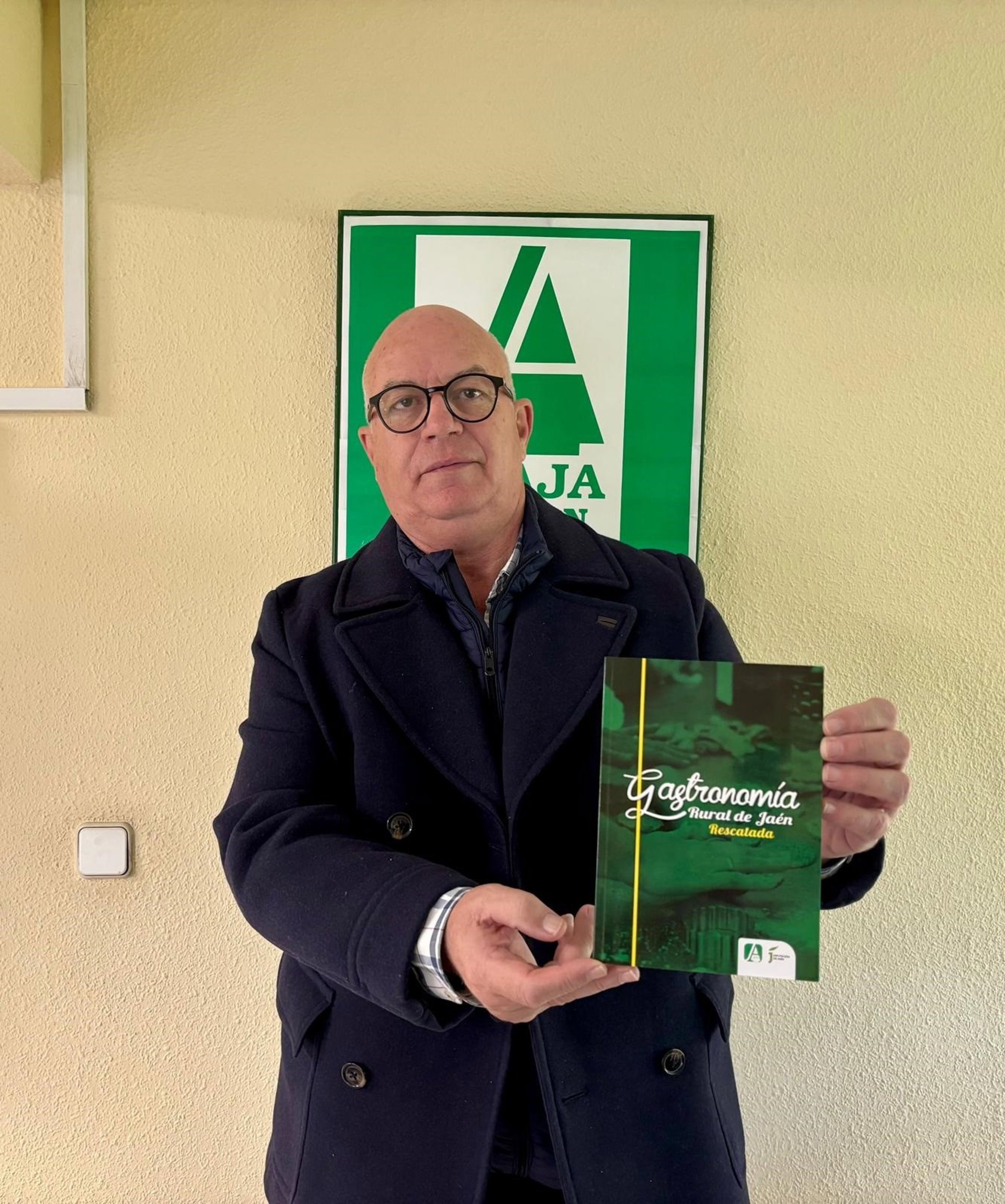 El portavoz y gerente de Asaja Jaén, Luis Carlos Valero, muestra el libro recopilatorio de recetas y maridajes - ASAJA JAÉN