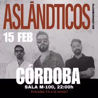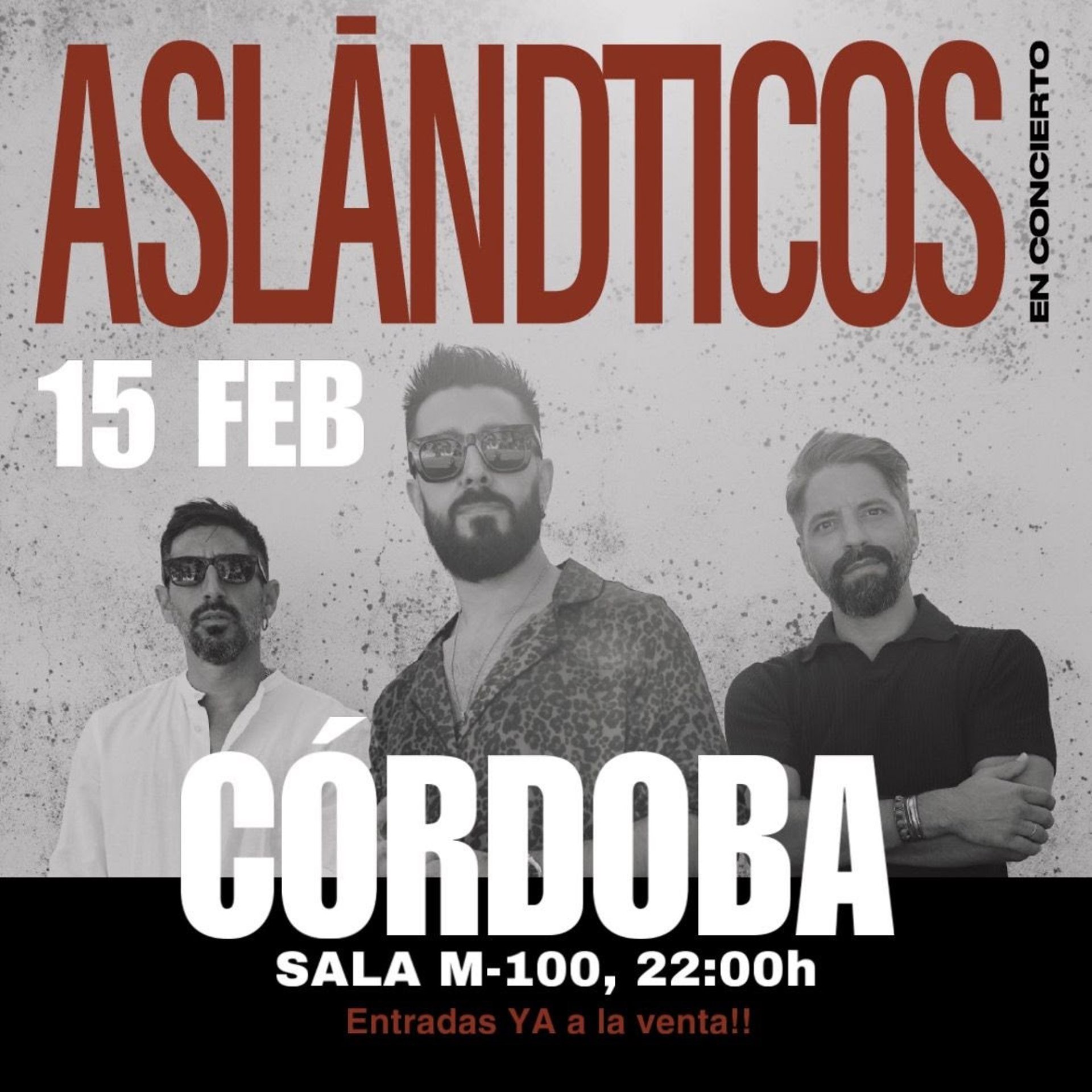 La banda Aslándticos, compuesta por Bueno Rodríguez (voz), Alberto Invernón (guitarra) y Jorge Carmona (percusión y coros) y con seis discos a sus espaldas, actuará el próximo sábado 15 de febrero, a partir de las 22,00 horas, en la Sala M100 de su Córdoba natal, un concierto para el que las entradas ya están a la venta.