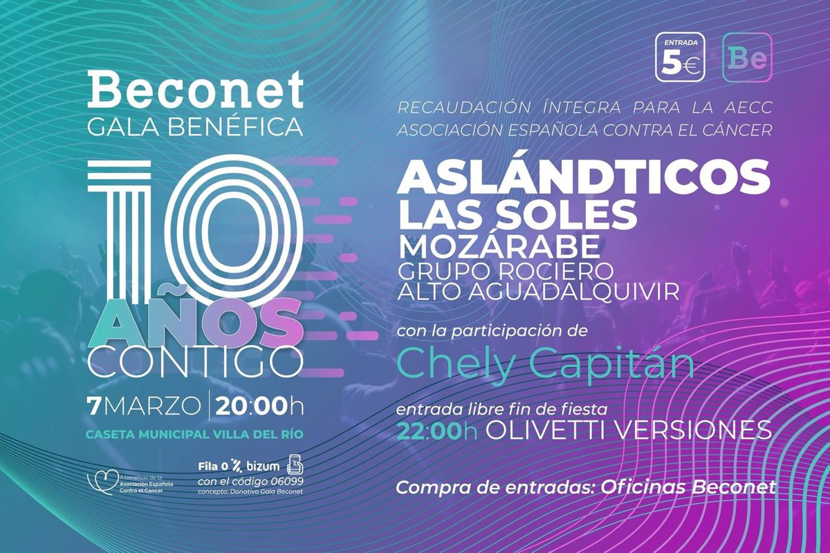 La localidad cordobesa de Villa del Río acogerá este próximo viernes 7 de marzo una gala benéfica en favor de la Asociación Española Contra el Cáncer, en la que se podrá disfrutar de actuaciones musicales como Los Aslándticos o Las Soles.