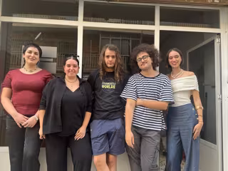 Desde la izquierda los artistas Julia Bolívar, Marta Lara, Ramón Serrano, Devon Villegas y Lola González - LA ESCOMBRERA