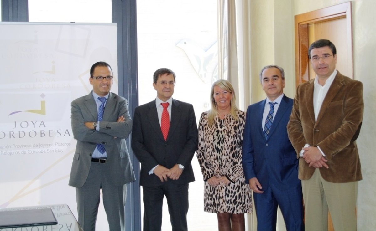 La Asociación Provincial de Joyeros, Plateros y Relojeros de Córdoba San Eloy y CajaSur Banco han acordado la elaboración de un convenio marco en el que se plasmarán nuevas vías de colaboración con el sector, en cuanto a ayudas a la internacionalización, tras el encuentro de trabajo mantenido en el Parque Joyero entre el director general de la entidad, Francisco Rapún, y la presidenta de la citada asociación, Milagrosa Gomez, que estuvo acompañada por el vicepresidente, Rafael Valenzuela, el tesorero Fernando Chico, y el gerente de la misma, Juan Pablo Gisbert.