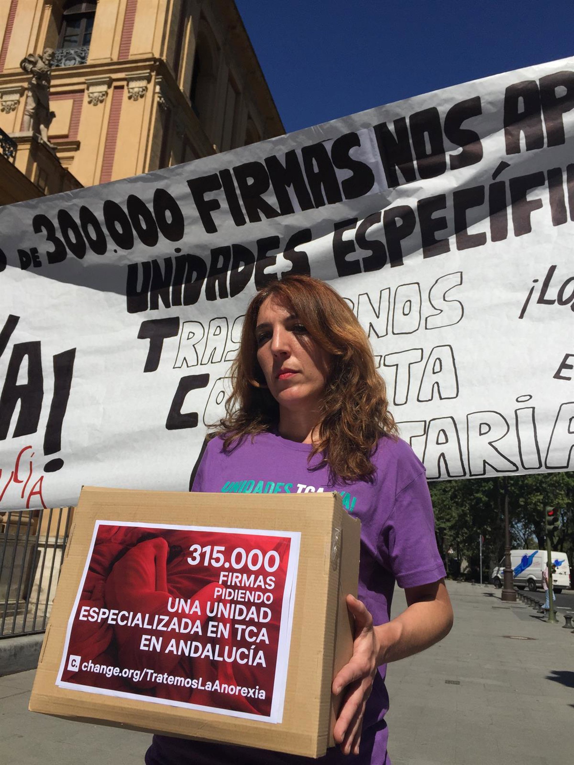 Patricia Cervera, la madre granadina de una joven con anorexia, entrega en el Palacio de San Telmo 315.000 firmas pidiendo la creación de unidades especializadas en trastornos alimentarios en una imagen de archivo - EUROPA PRESS - Archivo