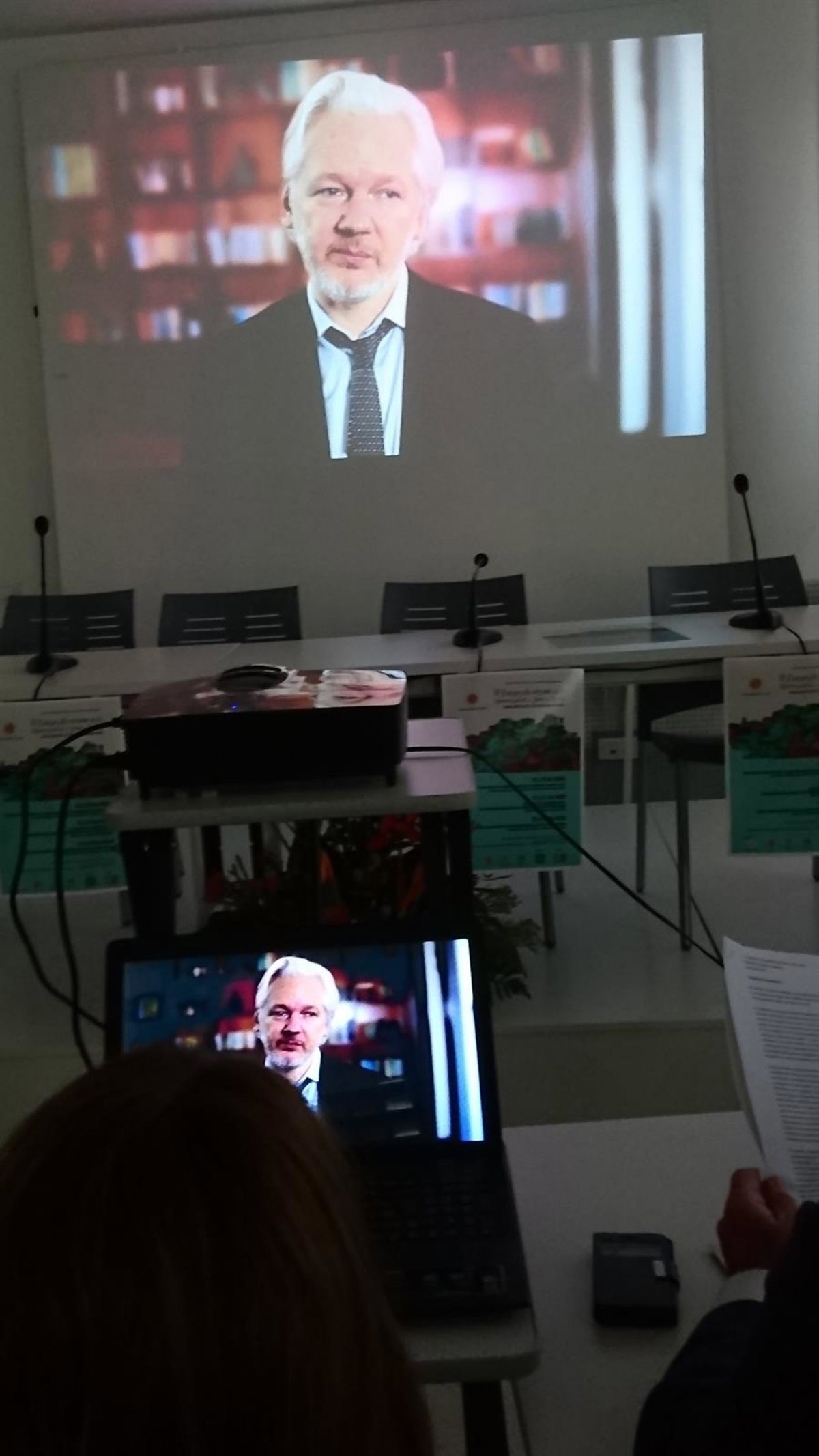 Assange, en una pequeña intervención de menos de diez minutos, se ha referido también a la transparencia entendida como la capacidad de entender nuestra civilización, a nosotros mismos y lo que debemos hacer con nuestro posicionamiento, así como el tipo de futuro deseamos como individuos y como humanidad en conjunto.