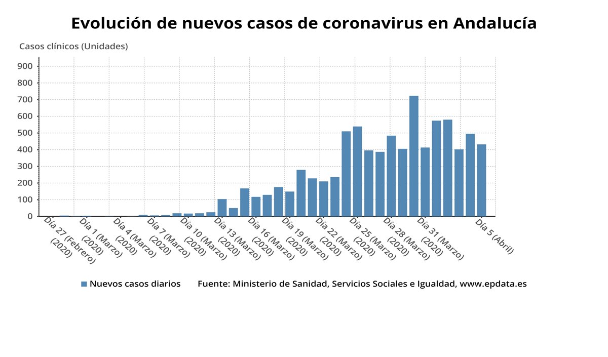 Con estos datos, Andalucía suma la cuarta jornada consecutiva con una subida inferior a los 500 contagios diarios, tras haber registrado 580 el jueves 2 y 574 el miércoles 1, y sigue sin alcanzar los 9.000 casos confirmados una semana después de que la Junta activase el plan de contingencia para dicho escenario.