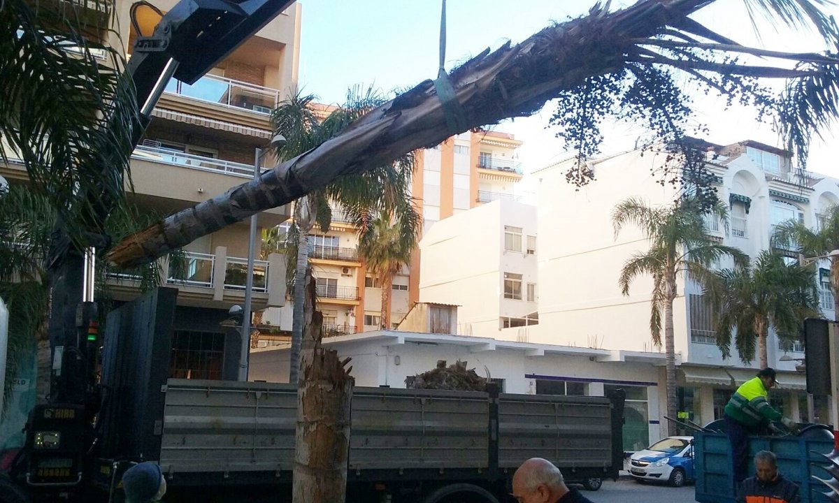 Los daños se han concentrado en la Avenida Costa del Sol, donde cayó una gran palmera de la variedad de coco plumoso, en los jardines de la urbanización Albayzín del Mar, donde han resultados dañados cactus, en la zona de Taramay, ficus, o en el Pozuelo, eucaliptos.