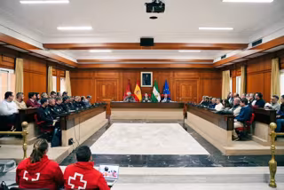 El Salón de Plenos del Ayuntamiento de Córdoba ha celebrado este miércoles la primera reunión de la Mesa Técnica para la Semana Santa 2025. En esta primera reunión han participado todos los servicios municipales implicados en la celebración de este evento --Policía Local, Infraestructuras, Turismo, Sadeco, Accesibilidad, Aucorsa, Emacsa, Movilidad, Protección Civil y Vía Pública-- así como representantes de la Asociación de Hermandades y Cofradías, Cabildo-Catedral, Cruz Roja Española, Cuerpo Nacional de Policía y Grupo Cero, entre otros.