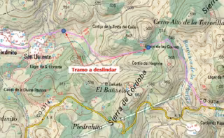 Mapa en el que se muestra el tramo del camino del Bañuelo a deslindar. - AYUNTAMIENTO DE CÓRDOBA