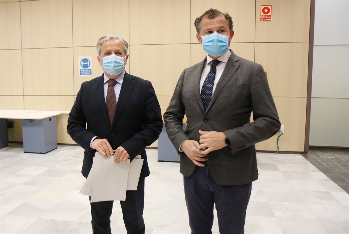 El teniente de alcalde delegado de Hacienda y Urbanismo del Ayuntamiento de Córdoba, Salvador Fuentes (PP), y el portavoz de Cs, David Dorado, han analizado este lunes los asuntos tratados en la Junta de Gobierno Local, que ha aprobado la convocatoria de 2022 de ayudas sociales en su modalidad de ayudas al alquiler de vivienda, dotada con un millón de euros.