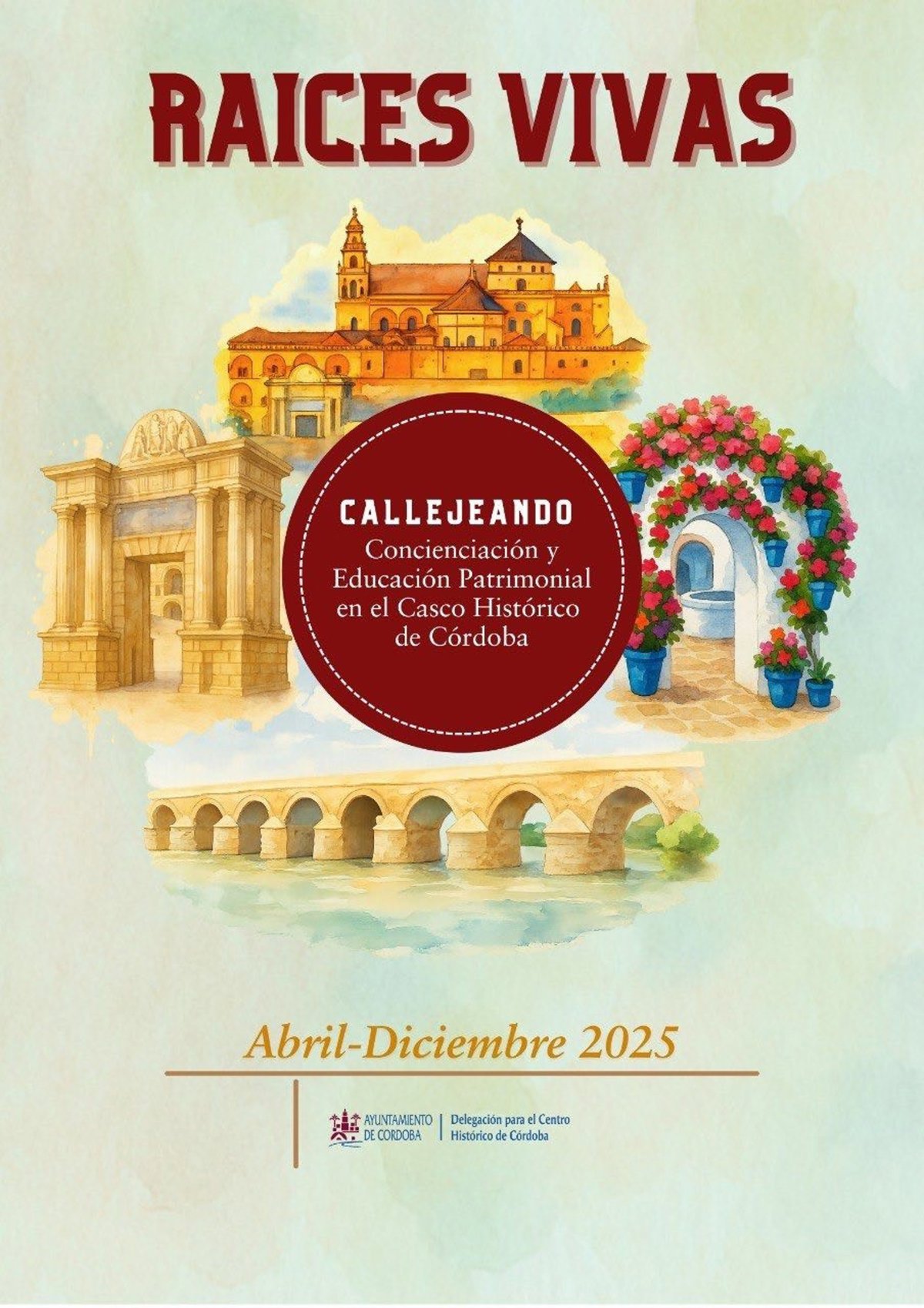Cartel del programa 'Raíces Vivas, Callejeando' para concienciar sobre la importancia del Patrimonio y fomentar la participación e interés de los ciudadanos en el cuidado del casco histórico en Córdoba. - AYUNTAMIENTO DE CÓRDOBA