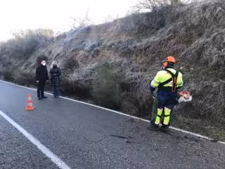Los tres operarios de Inagra, utilizando maquinaria desbrozadora, trabajaron durante toda la jornada limpiando matojos y hierbas que se encontraban en los arcenes de la carretera que une el Fargue con Haza Grande.