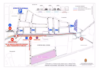 También se ha realizado una labor de coordinación entre la policía Local y la Guardia Civil para la provisión y organización de los efectivos necesarios para regular el tráfico según este esquema de acceso. Así, se desplegarán once efectivos de Policía Local y cuatro de Guardia Civil, con el objetivo de "evitar" la congestión de la zona y por ende los retrasos para los asistentes.