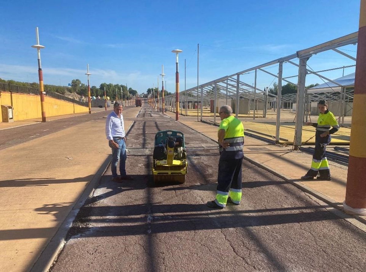 Además de la pavimentación, que ha permitido acabar con numerosos socavones de la superficie, en el ferial se llevan a cabo en la actualidad con recursos propios labores de albañilería, pintura, carpintería, electricidad y fontanería, al objeto de que la infraestructura del recinto esté lista de cara a la feria de San Lucas, que se celebra desde el 11 al 22 de octubre.