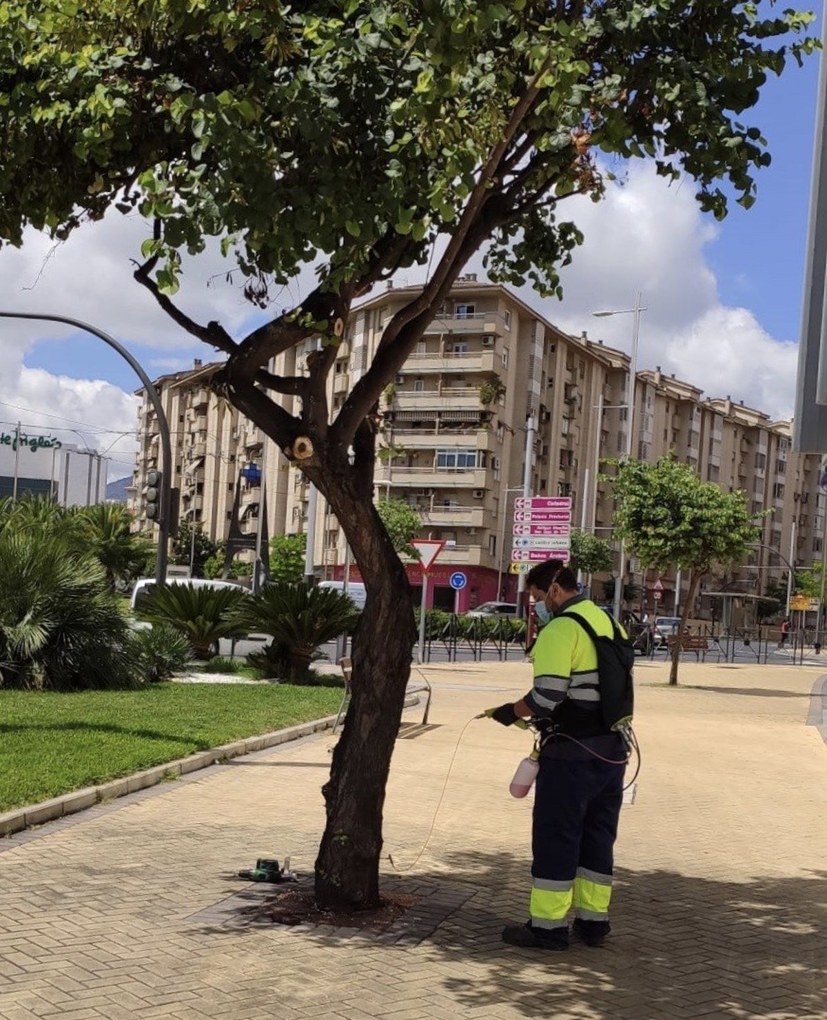 El Ayuntamiento de Jaén acomete a buen ritmo los tratamientos a través de endoterapia contra la galeruca del olmo, unas labores coordinadas entre la Concejalía de Medio Ambiente y FCC que "permiten combatir de forma más directa y sostenible" este coleóptero perteneciente a la familia 'Chrysomelidae', que se alimenta tanto en estado larvario como adulto de hojas de olmo y que constituye una de las principales plagas defoliadoras de la masa arbórea en la ciudad.