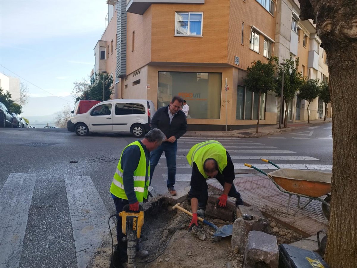 El área de Mantenimiento Urbano del Ayuntamiento de Jaén está llevando a cabo obras en la calle Obispo Alonso Suárez, en el barrio de Belén y San Roque, con el objetivo de facilitar el tránsito peatonal y de forma especial para aquellas personas con algún tipo de discapacidad física.