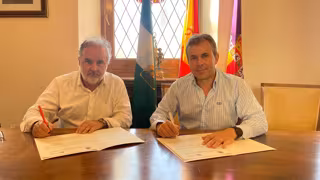 El alcalde de Jaén, Julio Millán, y el presidente del consejo de administración de Epassa, el concejal Francisco Lechuga, han materializado la firma del convenio por el que el Ayuntamiento cede a la Empresa Pública de Aparcamientos y Servicios una parcela de terreno anexa al recinto ferial 'Alfonso Sánchez Herrera' cercana a la actual Comisaría de Policía Local, en la que se ubicará el futuro depósito municipal de vehículos que hasta ahora estaba ubicado en el aparcamiento de los Goya.