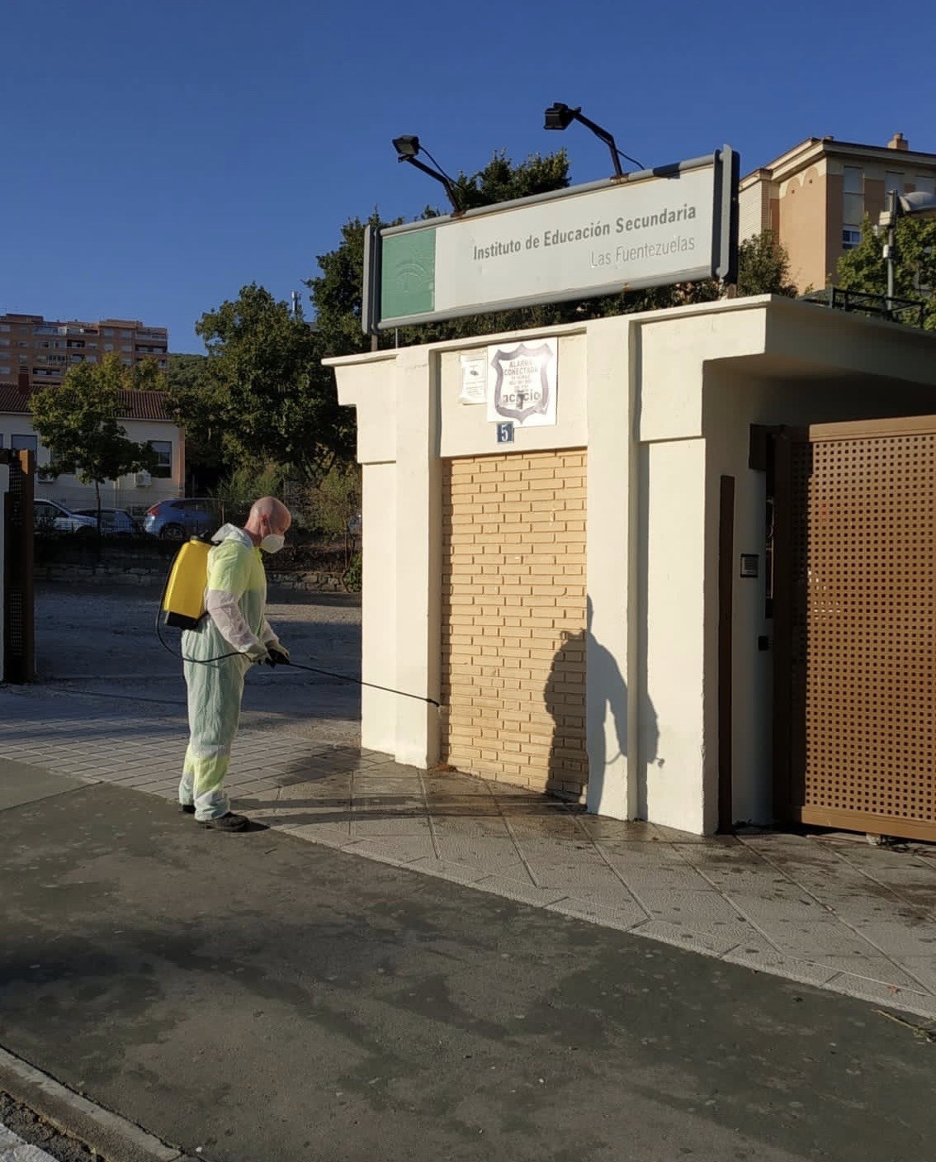 Desinfección en el entorno de un instituto de Jaén. - AYUNTAMIENTO DE JAÉN