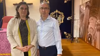 La concejala de Economía y Hacienda, María Orozco, con Francisco Latorre, presidente de la Agrupación de Cofradías y Hermandades de la Ciudad de Jaén - AYUNTAMIENTO DE JAÉN