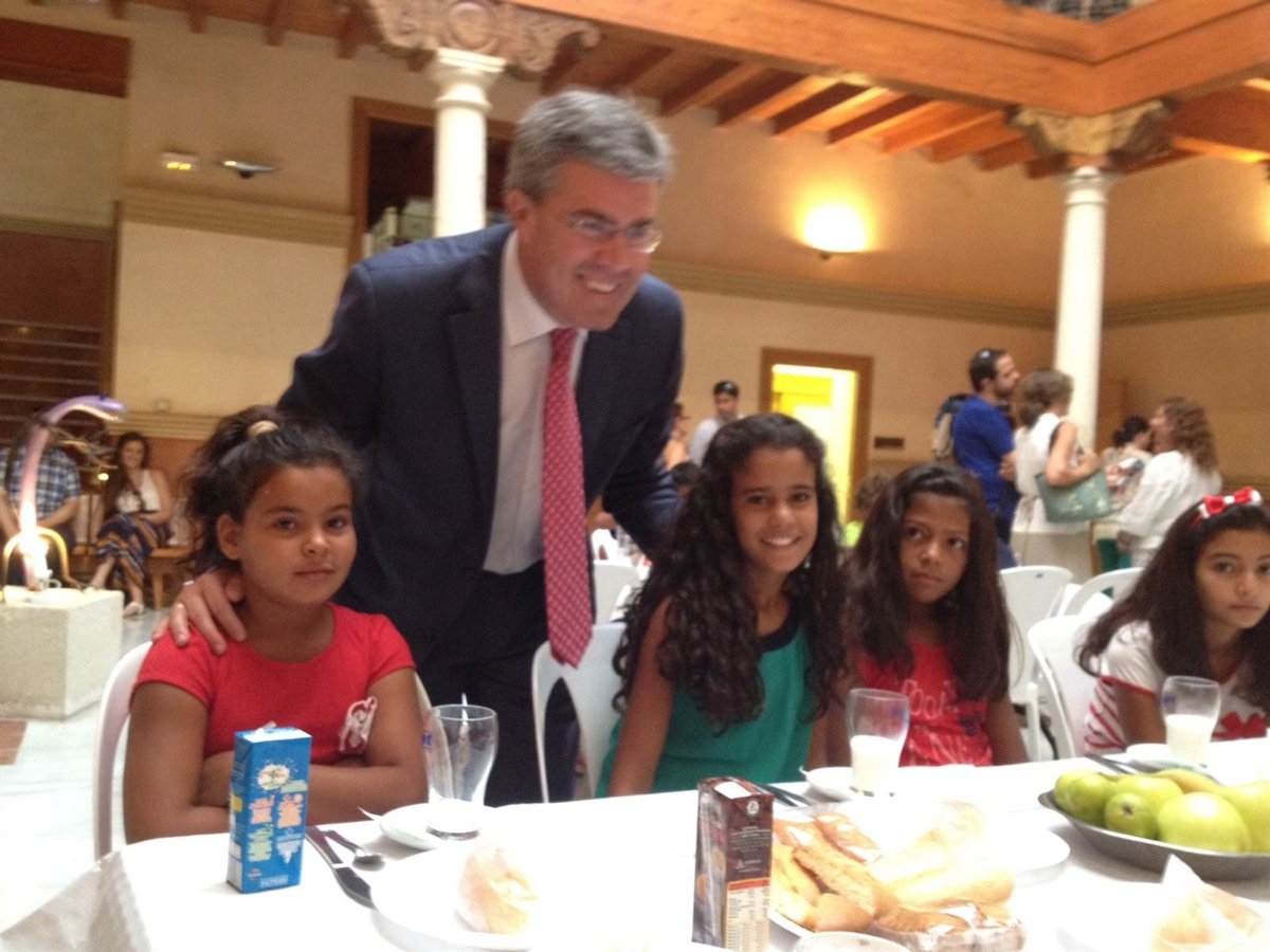 El Ayuntamiento de Jaén ha ofrecido este viernes un desayuno de bienvenida a los niños saharauis que van a pasar el verano en la provincia, al que han asistido el alcalde, José Enrique Fernández de Moya (PP); la teniente de alcalde y concejal de Asuntos Sociales, Reyes Chamorro; la edil de Educación, Francisca Molina, y el concejal de Deportes, Higinio Vilches.