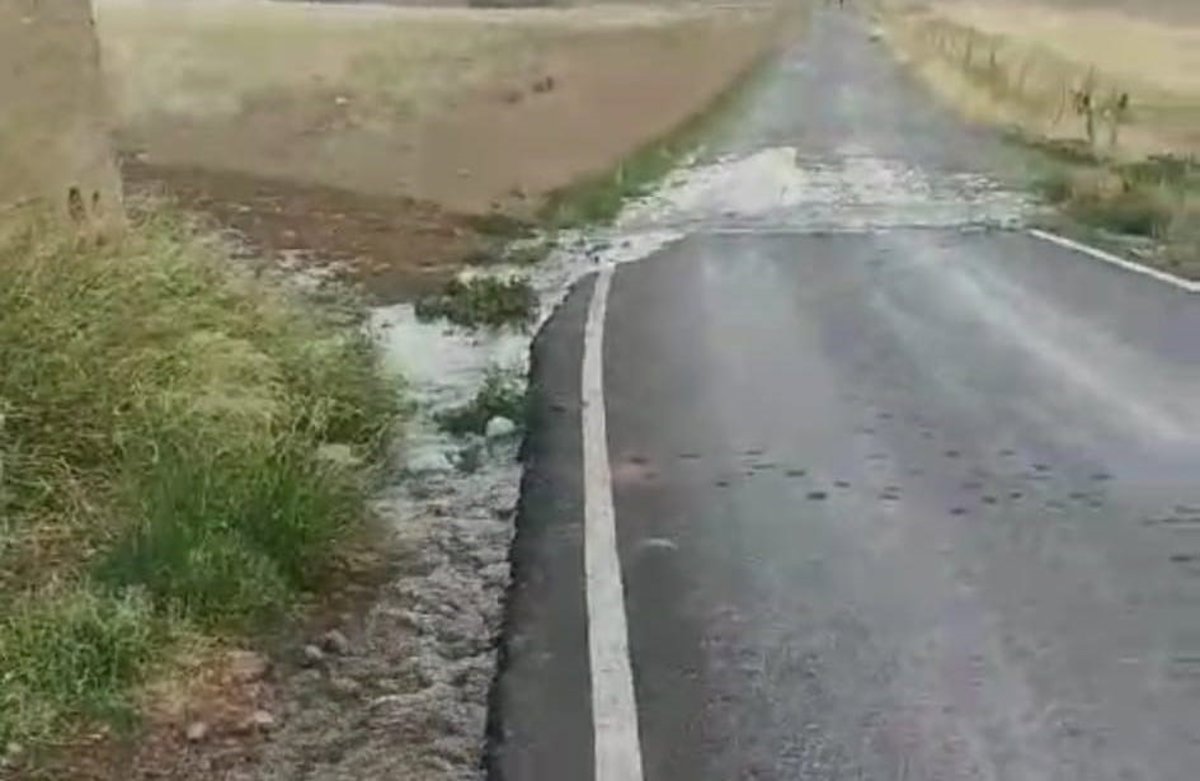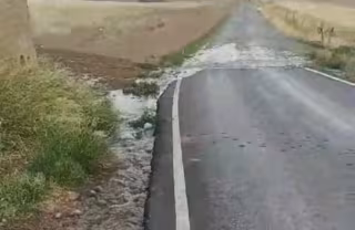 Rotura en el depósito en Peñarroya por el que se vierte agua, que llega a la carretera de acceso. - AYUNTAMIENTO DE PEÑARROYA-PUEBLONUEVO