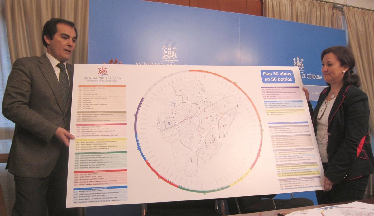 El alcalde de Córdoba, José Antonio Nieto, y la concejal de Infraestructuras, Laura Ruiz, han presentado este lunes las obras del proyecto '50 obras en 50 barrios', a las que se incorporarán 22 obras más de otros planes y que en total contarán con un coste aproximado de 20 millones de euros para la ejecución de las mismas, que se plantea antes de que culmine el año 2015, y "si es posible" antes de mayo de dicho ejercicio, cuando previsiblemente se celebren las próximas elecciones municipales.