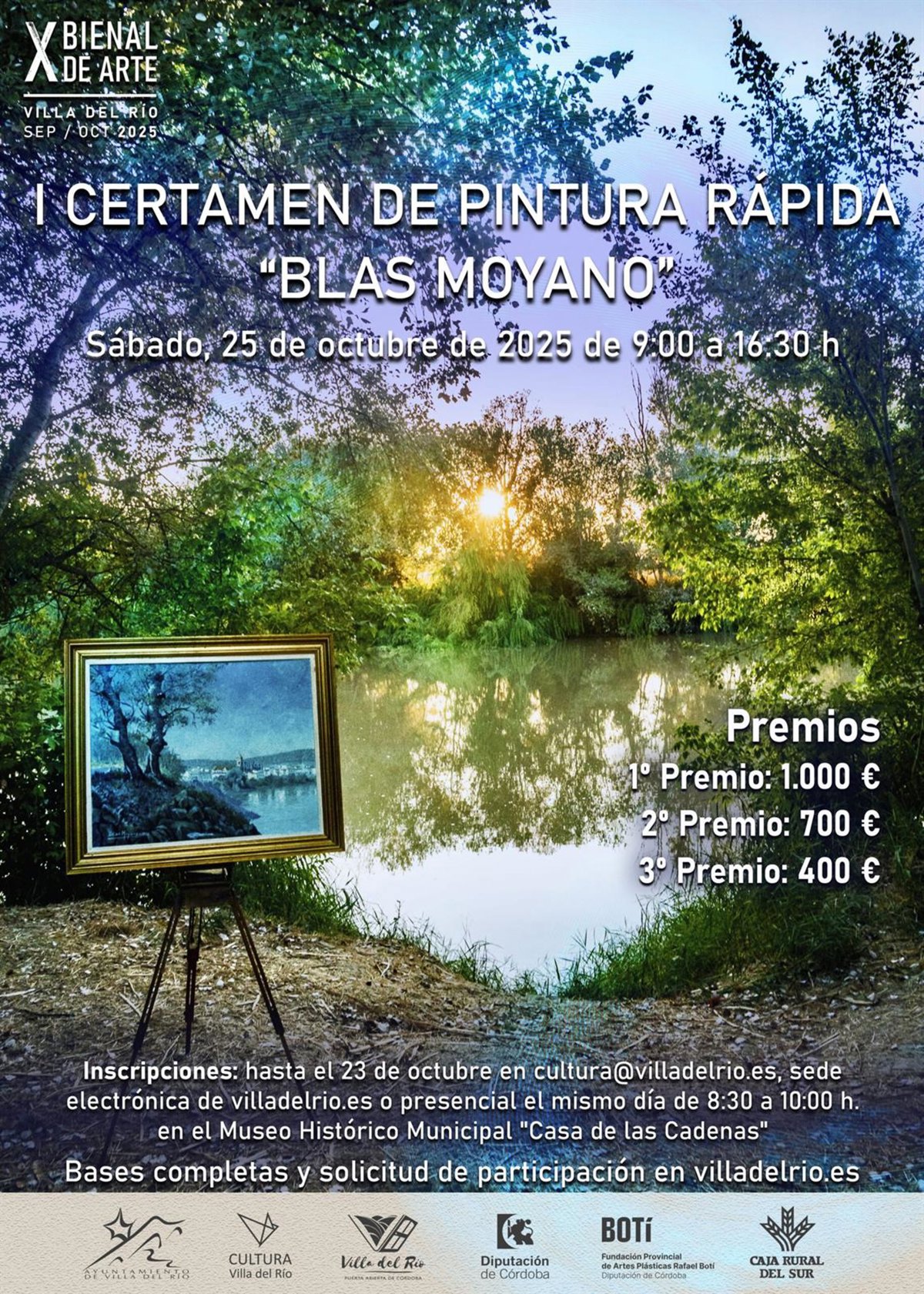 El Ayuntamiento de Villa del Río (Córdoba) ha convocado el I Concurso de Pintura Rápida 'Blas Moyano', que se celebrará el sábado 25 de octubre, en el marco de la X Bienal de Arte de Villa del Río que se está celebrando durante los meses de septiembre y octubre.