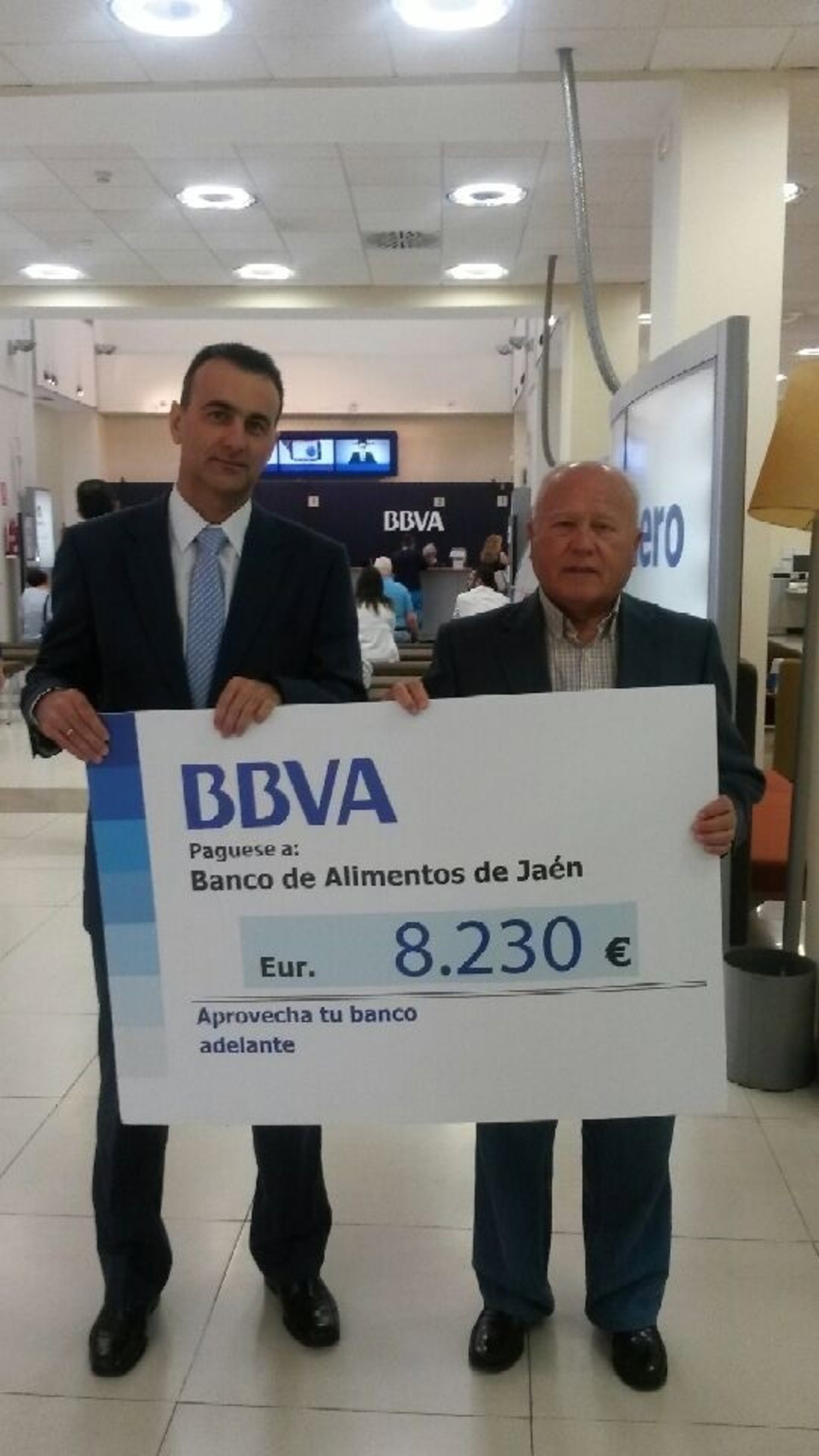 El BBVA ha entregado a la Federación de Bancos de Alimentos de Jaén un total de 8.230,74 euros recaudados entre sus clientes y los 157 empleados con los que la entidad bancaria cuenta en la zona, en el marco de la iniciativa 'Una mirada, un sueño. Tu ayuda, una esperanza'.